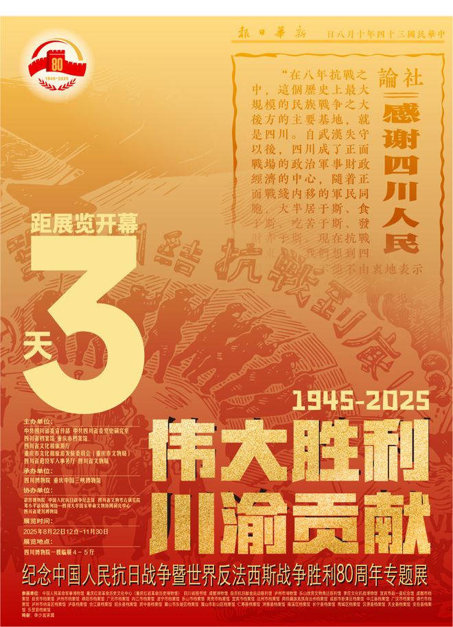 倒计时3天!“伟大胜利 川渝贡献”专题展将于8月22日开启