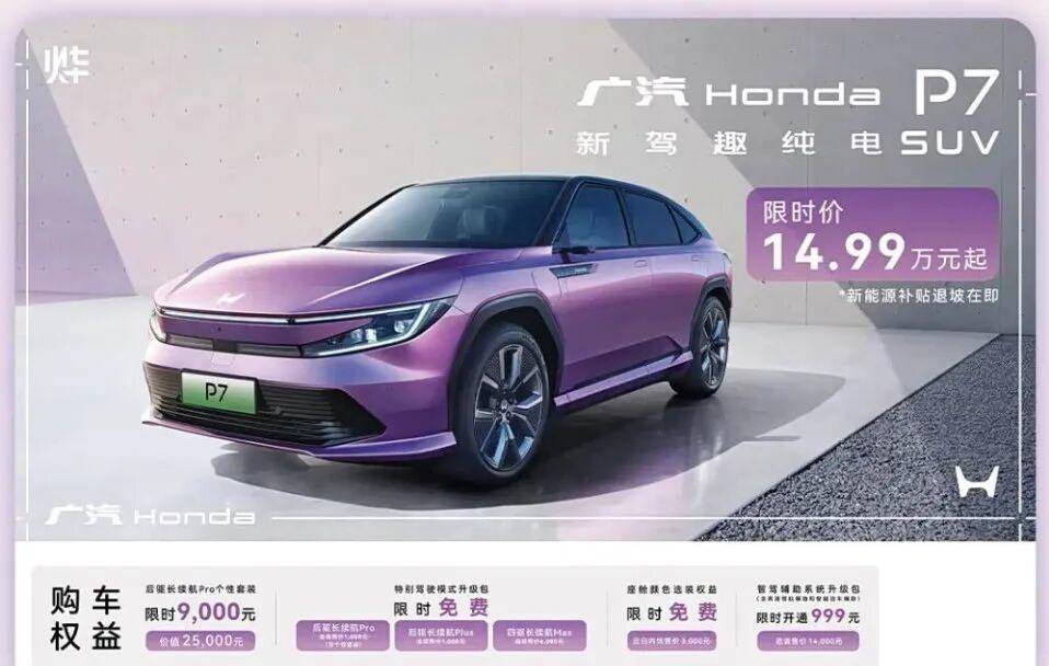 要说最近合资电动车市场有什么大动静,广汽本田P7这波操作确实吸引眼球。原本指导价19.99万起的车,现在限时优惠直接降到了14.99万起,等于便宜了整整五万块。这个价格能买到一台续航650公里的合资中型纯电SUV,放在以前真是不敢想。先
