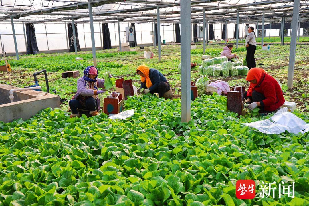 春节前夕,在连云港市海州区岗埠农场高效农业示范园内,一片繁忙而有序的景象映入眼帘——菜农们正紧锣密鼓地采收、打包各类时令蔬菜,全力保障春节期间市场的稳定供应,让市民的“菜篮子”更加丰富多样。走进园区5号大棚,一股清新的蔬