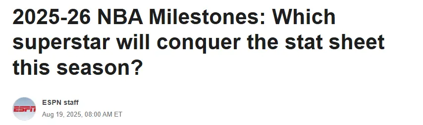 ESPN详细分析一下2025-26赛季值得关注的里程碑数据,有些球星会巩固自己在历史数据榜上的领先地位,而另一些则将跻身顶级榜单的前十名——
