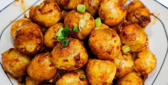 2、起锅热油,放入鹌鹑蛋炸至金黄色,捞出沥干油。