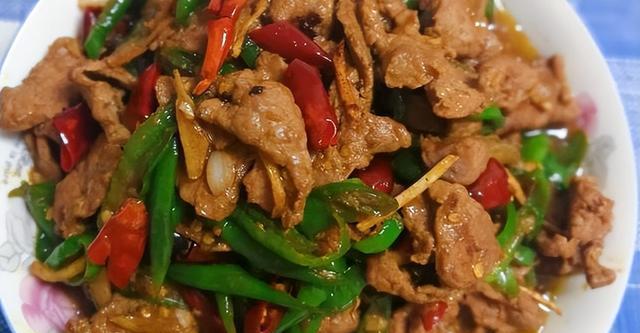 材料:牛肉、青椒、干辣椒、大蒜、生姜