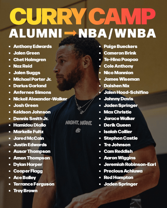 “库里训练营将于8月13日回归,我迫不及待地想看到今年的天才球员们,这个训练营总是让我回想起我早期的篮球生涯,敬请期待。”