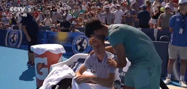 局间休息时,意大利小伙抓紧时间用冰袋降温,糟糕的身体状态拖慢了他的反应和脚步,意大利人面对小球甚至没有去追赶,面对破发点擒拿,罕见地发出一记双误,再次送出发球局以0比5落后,在与医务人员沟通后,辛纳无法坚持决定退赛。