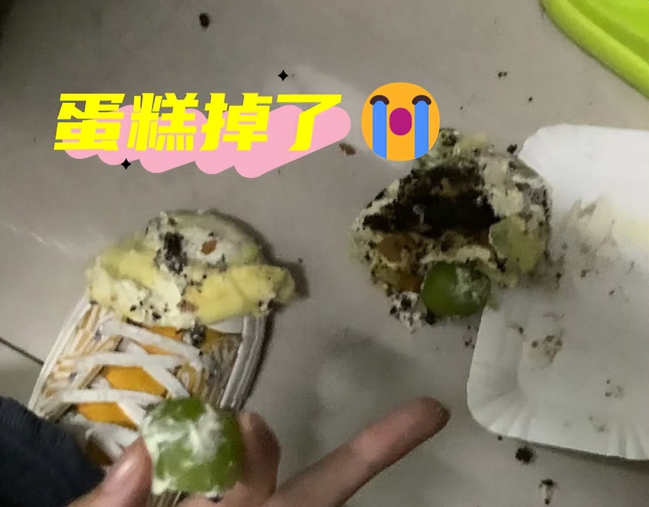 用商家赠的蛋糕托盘时,一不小心,蛋糕就会掉。急性子的你又想吐槽了!