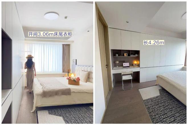 2)3m开间的卧室,做好床尾柜后,差不多能剩下43cm的空间,虽然略显局促,但好在日常通行频率并不高。(记得搭配无靠背床)