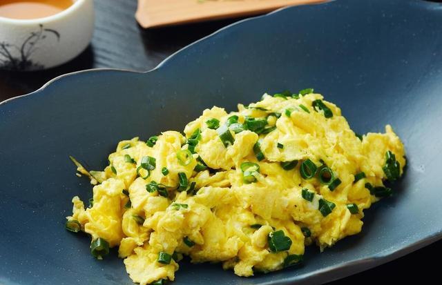 3. 炒鸡蛋:将打散的鸡蛋液倒入锅中,翻动锅中的葱段,迅速将鸡蛋液倒入锅中。静置几秒钟,让鸡蛋液在锅中略微定型,然后用铲子轻轻翻动,使鸡蛋成大块状,炒至鸡蛋完全熟透且呈现出嫩滑的状态。