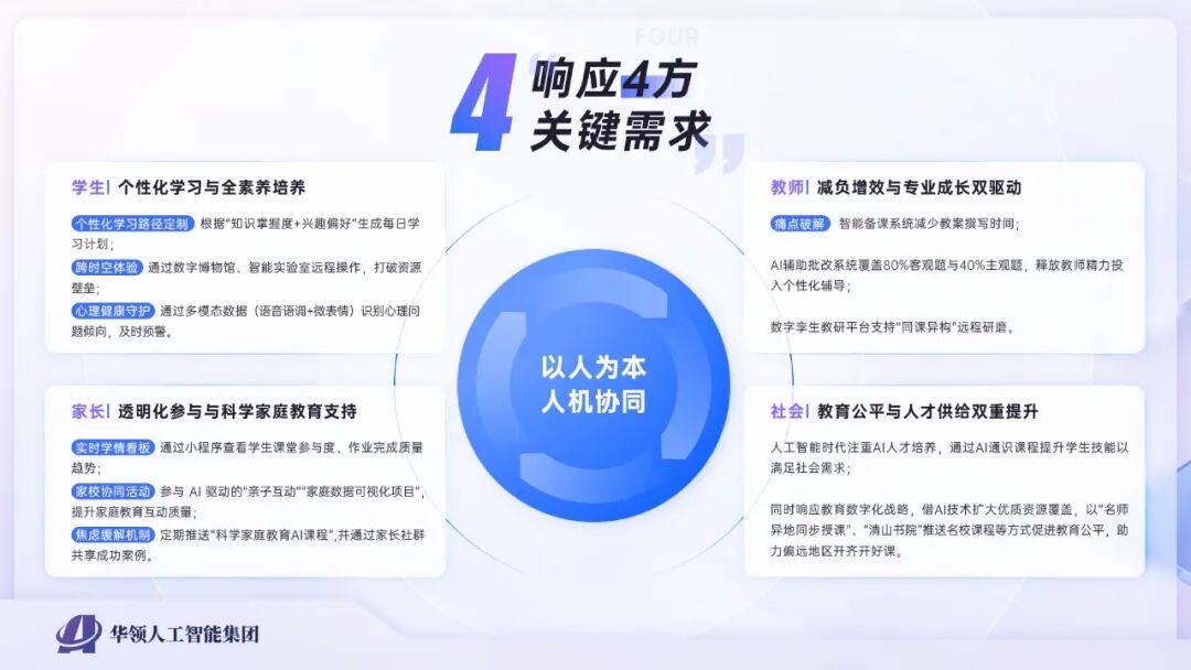 教育的深度转型不仅需要学生的主动参与,还需要教师、家长、学校和社会的共同努力。华领通过个性化学习路径、教师减负增效、家长实时学情透明等方式,确保教育的各方需求得到同步响应。