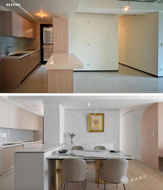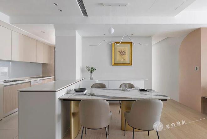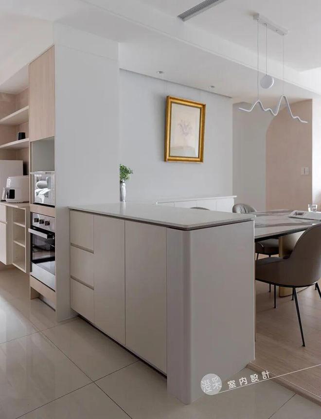 用餐区刻意降板,藏起设备还让客厅天花显高挑✨