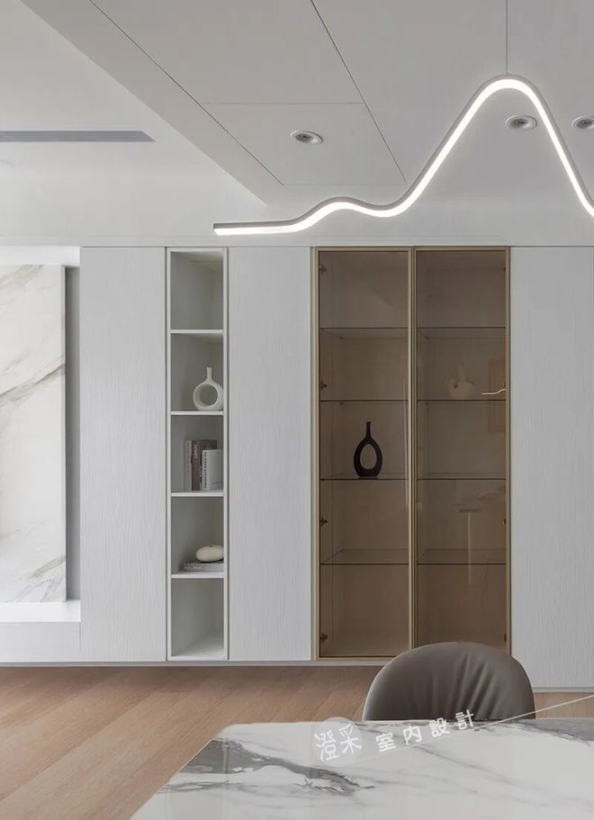 错落门片高柜 + 玻璃展示柜,收纳分区超清晰✨