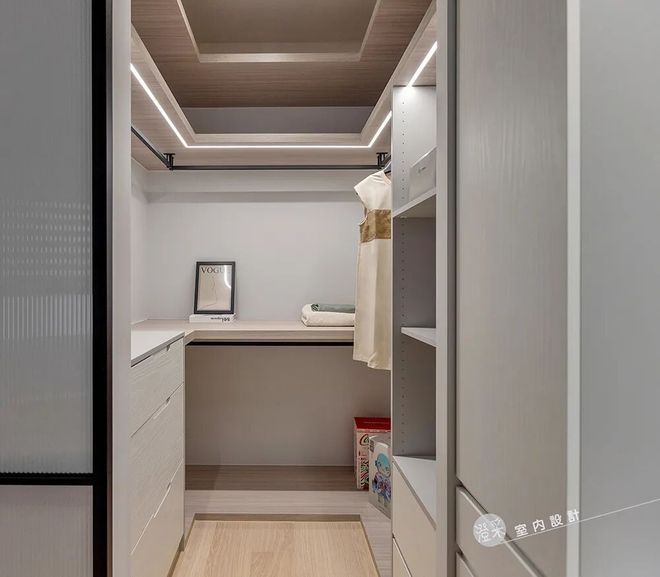 下方美耐板机柜内凹设计,暗藏沟槽灯带