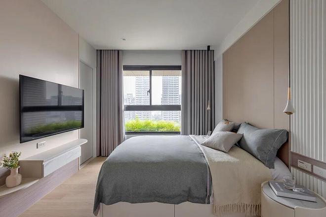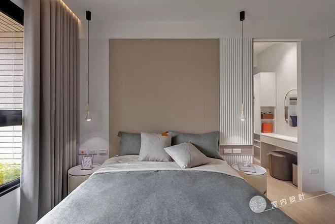 再以皮质板材衬为床背墙,全屋粉色调的温馨柔美