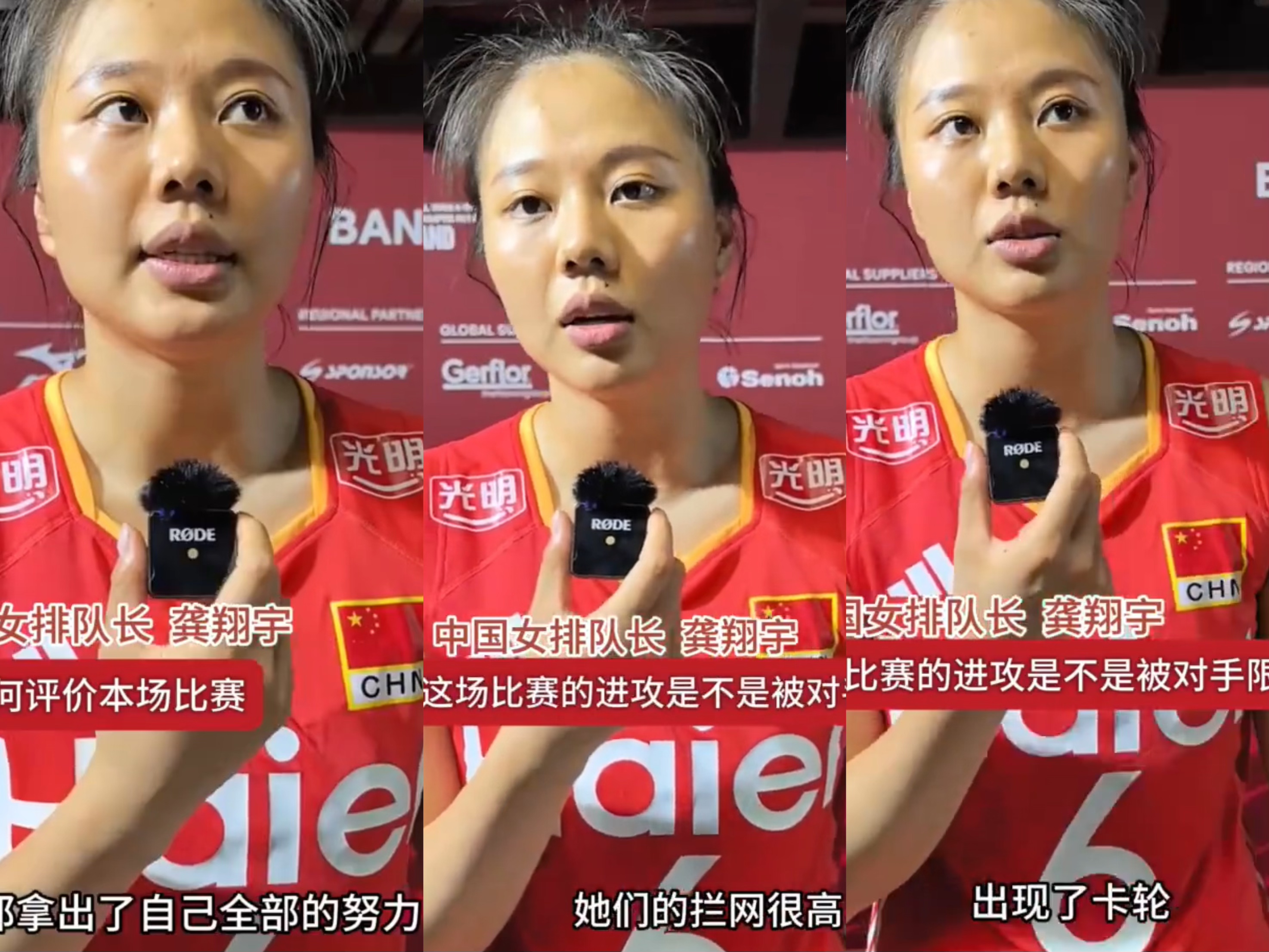 赛后,中国女排队长龚翔宇,本场拿到8分(16扣6中2拦),她接受采访时坚定表达了全队的努力与对未来的信心:“我觉得今天这场比赛,大家在场上都拿出了自己全部的努力,虽然比赛输了,但是也通过这场比赛能看出来,我们今后会有很高的提升空间!”