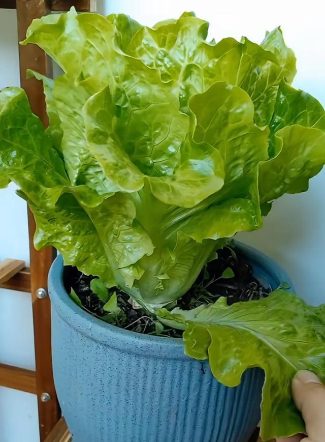 盆栽的生菜放在客厅里可以当绿植,关键的时候可以掰一掰叶子做菜,炒来吃。
