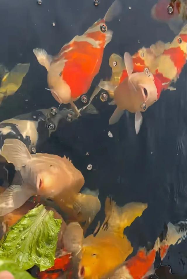 ③本来我以为他是要自己吃,后来他竟然拿着这片生菜叶子去喂锦鲤。哦,好吧,这老钱不是普通人,是个土豪哇。