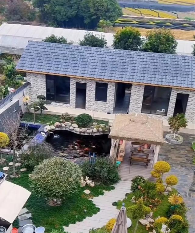 这个是院子的左边,里边有种满各种景观树木的花池,还有一个可供休息的小亭台,更有养锦鲤的一个水池,这个水池看上去面积就不小啊,里面养的锦鲤也很多,真是让人羡慕啊。