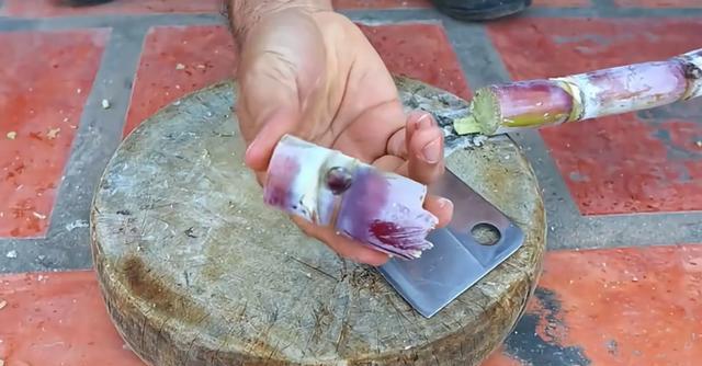 ②将甘蔗切成一节一节的,一定要保留完整芽点,这里将是它长出新枝新叶的起点。