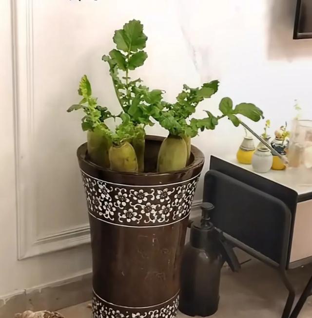 ②他家里还养了其他的绿植,比如盆栽的生菜,寓意着“生财”。