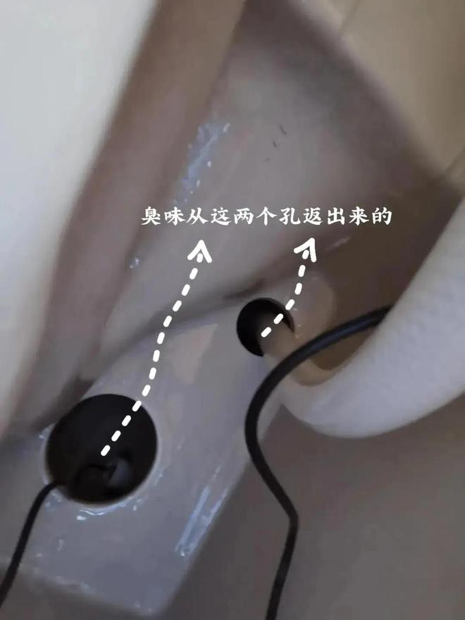 其实,这就是马桶后期的安装孔没有做到密封,下水管道里的臭味从这里返到卫生间里的。