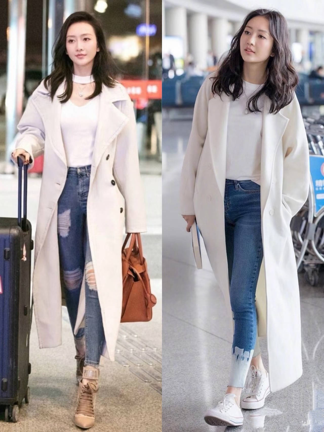 春天里的风衣,或者呢子大衣,都建议选择浅色系。浅色系穿起来更温柔、也有一定的减龄效果。