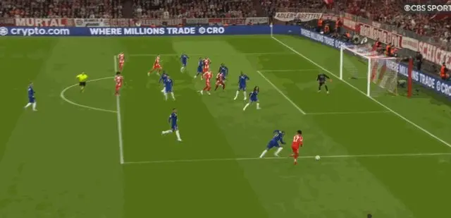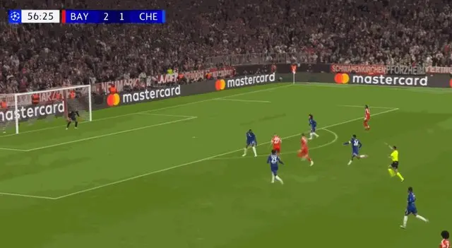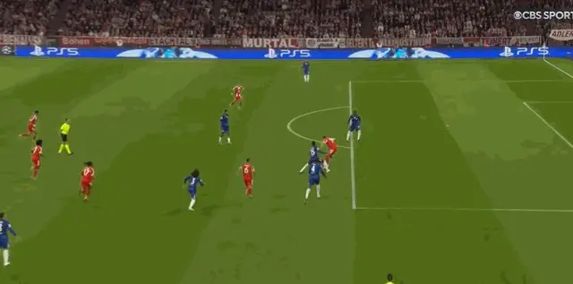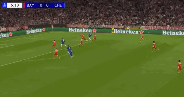 第7分钟,切尔西发动快速反击,恩佐·费尔南德斯接到帕尔默横传在小禁区正面的射门被基米希封堵。
