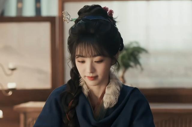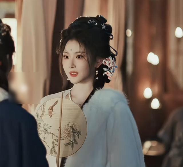 孔雪儿穿一身绫罗绸缎,领口绣着暗纹,头发挽得利落,露出光洁的额头和清晰的下颌线,哪怕是慌慌张张用袖子擦嘴的动作,眼神里也藏着股精明劲儿,那种江南女掌柜的从容大气,不用说话就藏不住。