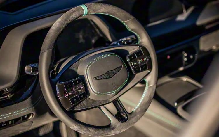 内饰方面,新车以翻毛皮材质为主基调,搭配醒目的绿色缝线点缀,方向盘中央还增设了回正标识,座椅、中央扶手等关键部位同样采用翻毛皮包裹,筒式座椅则进一步强化了包裹感,整体运动氛围营造到位。不过动力层面,官方暂未透露具体参数,仅强调这台概念车主要用于展现Magma高性能部门的未来发展愿景。