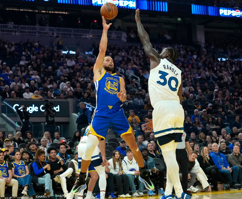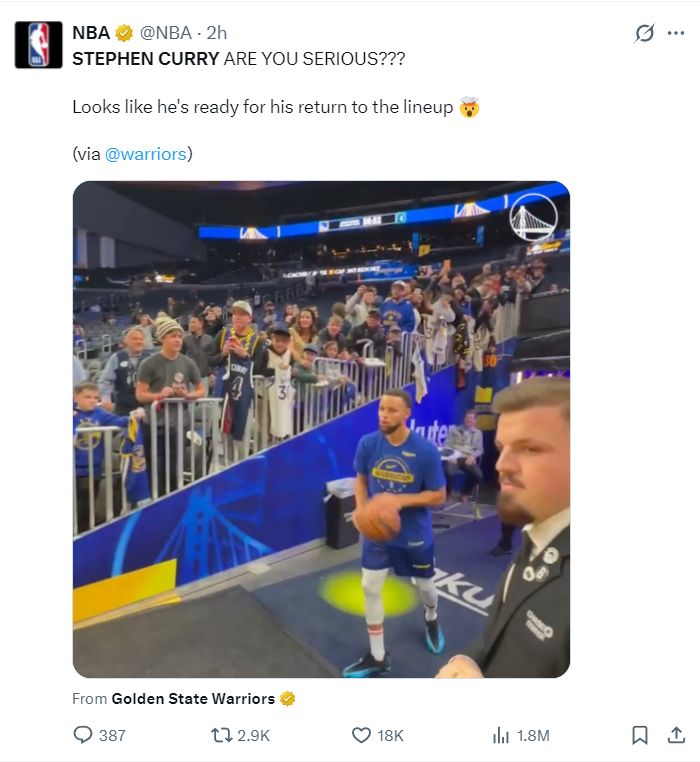 库里伤停五场比赛后复出,11月27日-12月13日也就是整整16天,但斯蒂芬的三分手感依旧令人咋舌,赛前他命中一个贯穿全场的超远三分球,这个球在天空中是一个弧线命中。