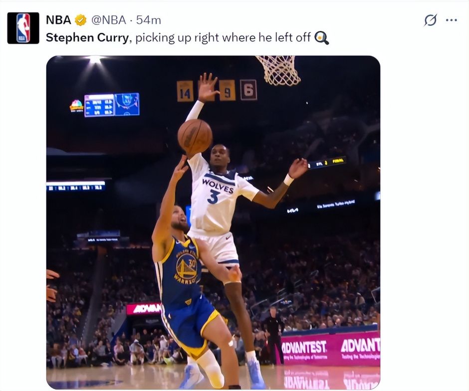 末节有些尴尬了,库里登场后森林狼是一波8-0将分差拉开到12分,科尔只能暂停。库里连拿5分帮助勇士止血,库里助攻穆迪三分再中,还剩2分50秒库里关键三分缩小到1分,末节库里9中5+三分4中3+罚球2中1拿到14分1篮板1助攻真的尽力了。