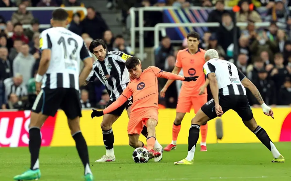 整个上半场,纽卡斯尔抢开局的意图非常明显,一度将巴塞罗那的阵型压制在半场防守。霍尔、乔林顿、巴恩斯所在的左边路,数次打穿阿劳霍的防守。而巴塞罗那顶住了对手的攻势之后,亚马尔、拉菲尼亚逐渐发挥出了自身脚下的优势,与对手形成均势。