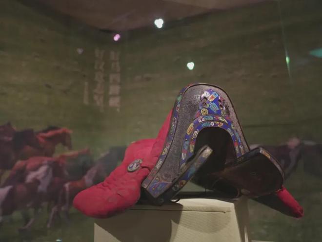 地理环境与生计方式影响着人们的生产生活,塑造了鄂尔多斯独特的民俗文化。展览第二部分展品以生活用具为主,有极富鄂尔多斯民俗特色的景泰蓝马鞍、酥油桶、蒙古棋、妇女头戴等特色文物。观众在展厅中不仅能够概览鄂尔多斯的文化面貌,更能以物见人、感受到器物背后的生活律动。