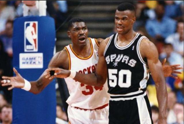 奥拉朱旺打球素以脚步动作华丽而著称,堪称史上“最华丽的中锋”。在他退役之后,众多NBA球员都要花钱,找他培训脚步动作,最近的一位就是字母哥。他在1995年西决上戏耍“海军上将”大卫-罗宾逊的画面,已成NBA历史经典。