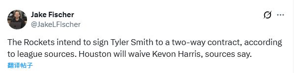 北京时间12月3日,据NBA记者杰克-费舍尔报道,火箭队计划与自由球员前锋泰勒-史密斯签下一份双向合同,为了给这位新援腾出阵容名额,球队将裁掉后卫凯文-哈里斯。