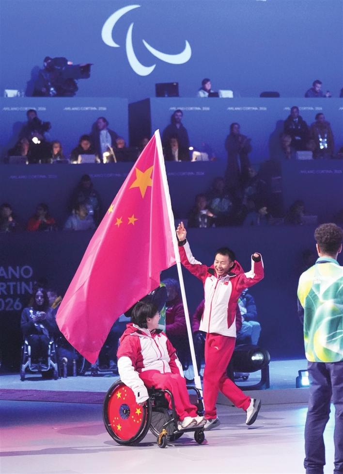 本文转自:三峡日报3月15日,中国体育代表团旗手蔡佳云(右)和王蒙在闭幕式上入场。当地时间3月15日,2026年米兰-科尔蒂纳冬残奥会闭幕式在意大利科尔蒂纳丹佩佐举行。本届冬残奥会上,中国代表团共夺得15枚金牌、13枚银牌、16枚铜牌共