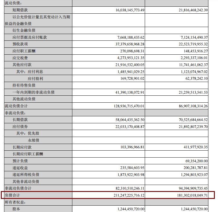 截至去年底负债总额超2000亿