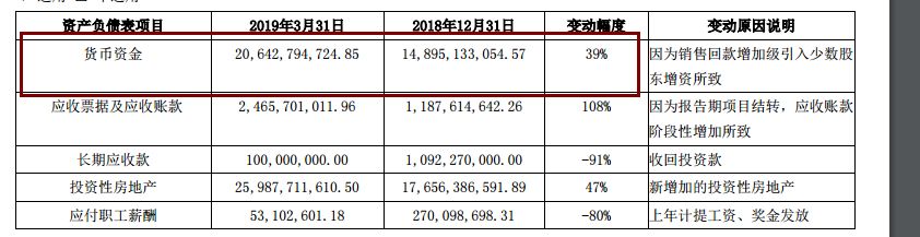 2019年一季报显示,通过处置资产,公司资产负债率从去年底的86.88%降至84.55%,净负债率从去年底的384%降至279.19%。但同时,泰禾流动负债总额共1254亿元,短期借款145亿元,一年内到期的非流动负债315亿元,货币资金为206亿元。