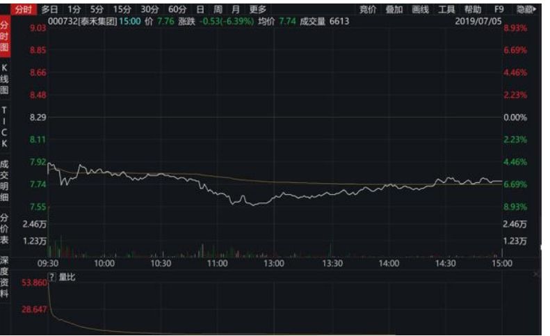5日沪深股市开盘后,泰禾集团的股价开始下跌,盘中最大跌幅达8.93%,最终下跌6.39%,以7.76元/股收盘。与4日收盘相比,泰禾集团全天市值蒸发约13.2亿元,总市值跌破200亿元。