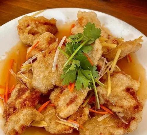 锅包肉食材:里脊肉,胡萝卜,大葱,香菜,蒜,土豆淀粉做法:1、酱汁:白醋俩勺+白糖俩勺+盐一丢丟+生抽小半勺+香油小半勺2、调味(腌肉):料酒半勺+胡椒粉适量+盐适量3、肉片切薄厚片用刀片稍微拍一下。土豆淀粉提前俩三个小时