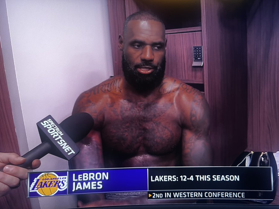 虎扑11月24日讯今日NBA常规赛,湖人对阵爵士的全场比赛已结束,湖人108-106爵士。湖人球员勒布朗-詹姆斯全场出战34分钟,18投8中,三分4中0、罚球2中1得到17分6篮板8助攻1抢断。赛后,詹姆斯接受了采访,谈到最后时刻险些被逆转。“没有