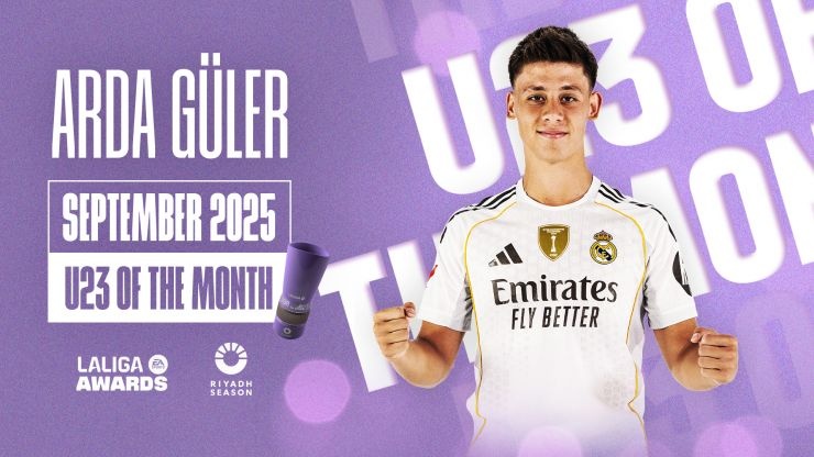 直播吧9月30日讯官方消息,居勒尔荣获9月份西甲最佳U23球员奖,在9月份,居勒尔凭借出色的表现帮助皇马在4场西甲赢下了3场,贡献2球2助攻。这是居勒尔第二次获奖,他曾在上赛季12月份获奖。这次评选他击败了费尔明、哈维-格拉、卡洛斯-