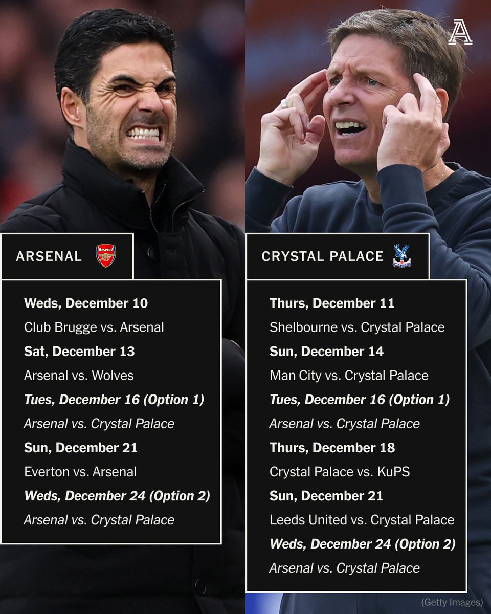 在周四凌晨进行的联赛杯第四轮比赛中,阿森纳2-0击败布莱顿,四分之一决赛将面对水晶宫。根据统计,12月11日,水晶宫将前往都柏林,在欧协联对阵爱尔兰球队谢尔伯恩,这意味着水晶宫与曼城的英超联赛比赛将改在12月14日进行。之后,水晶