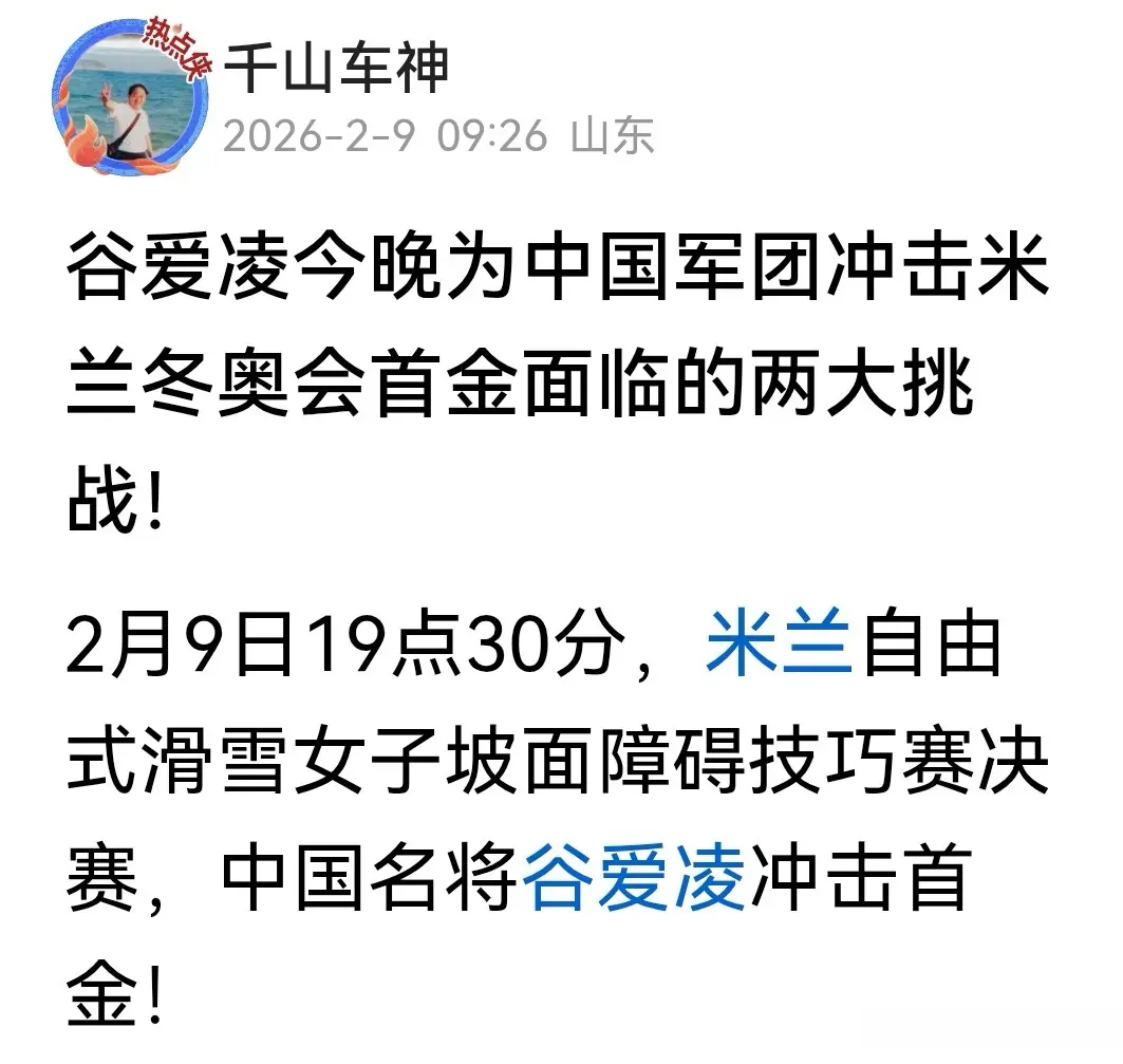 #头条创作训练营#米兰冬奥会自由式滑雪女子坡面障碍技巧决赛前,我发了一篇展望这场决赛的推文,主要观点是:谷爱凌冲击冠军面临的两大考验,一是要战胜对手格雷莫德,而是要战胜自己,尽量不要失误。北京时间2月9日晚,在2026年米兰冬