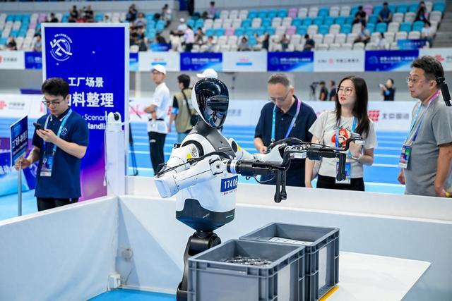 会跑步的“天工”在赛场冲刺的时候,它的兄弟“天轶”则展现了干活的能力。16日上午,世界人形机器人运动会场景赛首枚金牌诞生,北京人形机器人创新中心派出的“天轶2.0”以全自主方式完成任务,包揽冠、亚军。这个比赛项目要求机器人将