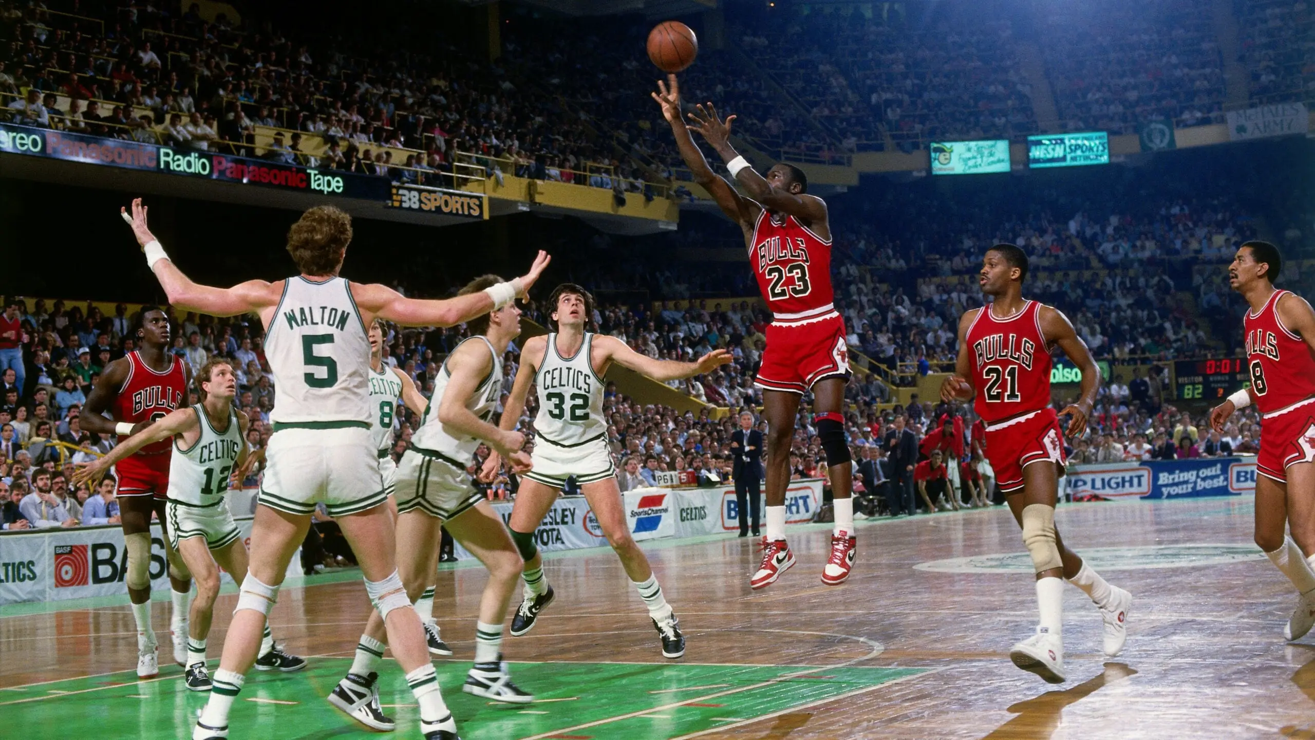 提起NBA季后赛的个人单场得分天花板,老球迷的脑海里肯定会蹦出一个经典画面:1986年,还是“二年级菜鸟”的迈克尔乔丹在波士顿北岸花园球馆,顶着拥有伯德、麦克海尔的“无敌绿军”,全场狂砍63分。赛后,连“逼王之王”拉里伯德都忍不