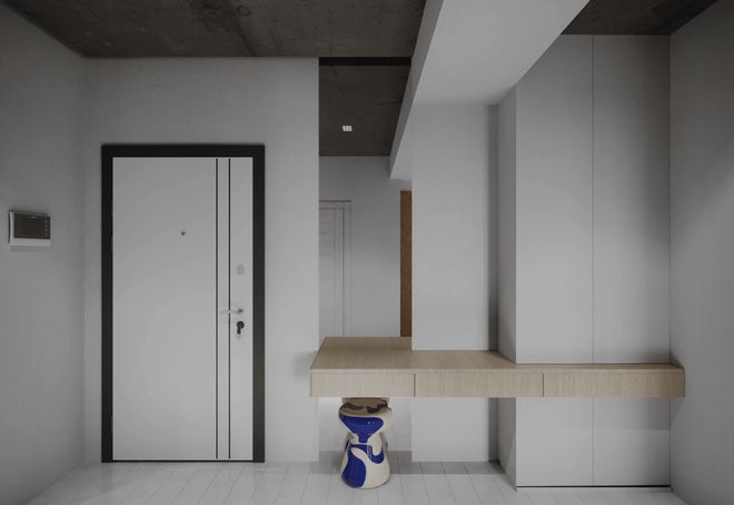 1.门厅:黑白门 + 木搁板超有设计感,蓝奶油色陶瓷凳直接封神!像个小签名,预告里面全是惊喜~