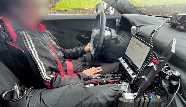 内饰方面,据曝光的内饰谍照来看,车内采用红黑双色调碰撞,方向盘、中控上沿以深黑色为主,仪表中部、座椅内部及安全带则注入鲜红色元素,营造强烈运动氛围。座舱以高模量碳纤维材质打造,一体式结构兼顾轻量化与刚性,GR 徽标点缀的碳纤维桶形座椅提供极致包裹性。此外,全液晶仪表与流媒体后视镜组成极简信息界面,中控区域保留七个金属质感物理按键,确保手套箱操作时的盲操便利性。小尺寸电子换挡杆是内饰点睛之笔,其嵌入中央扶手黑色凹槽,周边布局驾驶模式选择按键,紧凑设计既节省空间,又强化人机交互效率。