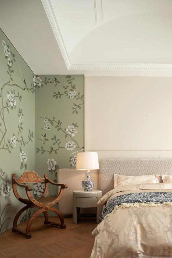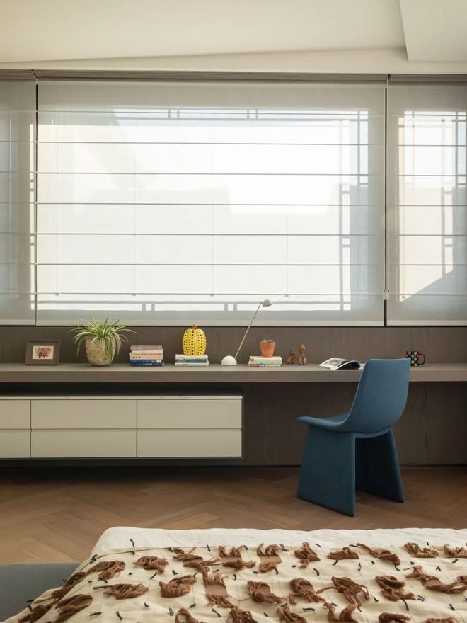 卧室空间的规划,同样为未来预留了充足的想象。它并非一个在交付时便被定义完成的终点,更像是一部随着家庭成员变化而不断续写的生活档案。许多家具与陈设延续自业主原有住宅:一盏旧灯、一把老椅、一件瓷器,连同收藏多年的边柜,被重新安放进新的日常之中。