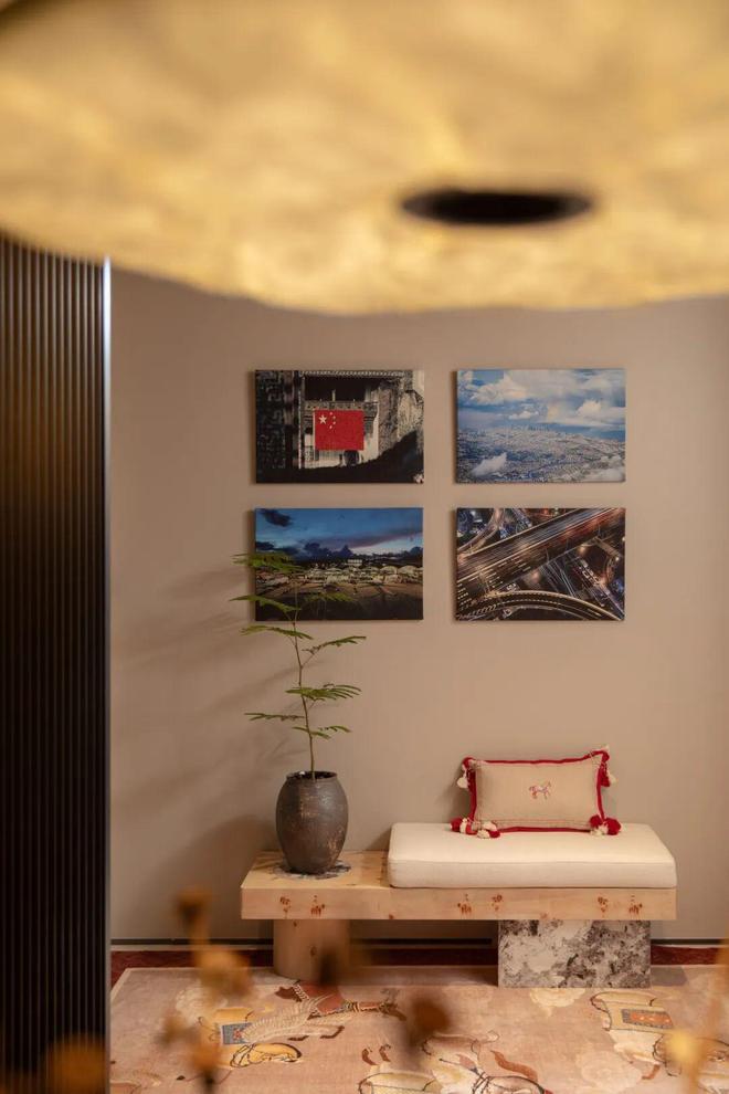 在这座宅邸,设计不急于将所有功能一次性定义完成,许多空间被保留出弹性。地下与二层部分墙面的大面积留白,成为专属的“家庭画廊”,屋主将儿子长久来拍摄的摄影作品臻选陈列,与家族长年累月积攒的老物件交错放置。未来,这面墙也将持续生长,挂满未来的记忆片段。