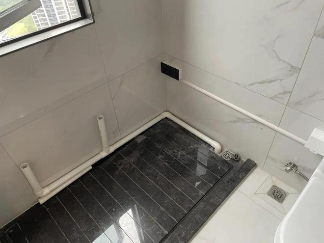 2、洗衣机进水需求,可以直接用原有的花洒冷水管,只需要安装一个角阀即可,而花洒热水管则做了封闭处理。