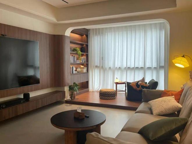 另外,你也可以参考「网友@李饱饱」家的方案,在阳台纳入客厅的情况下,利用不可拆的墙垛,设计一块隐形晾晒区。